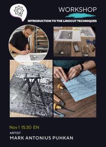 / Töötuba. Sissejuhatus linoollõiketehnikatesse graafiku Mark Antonius Puhkaniga