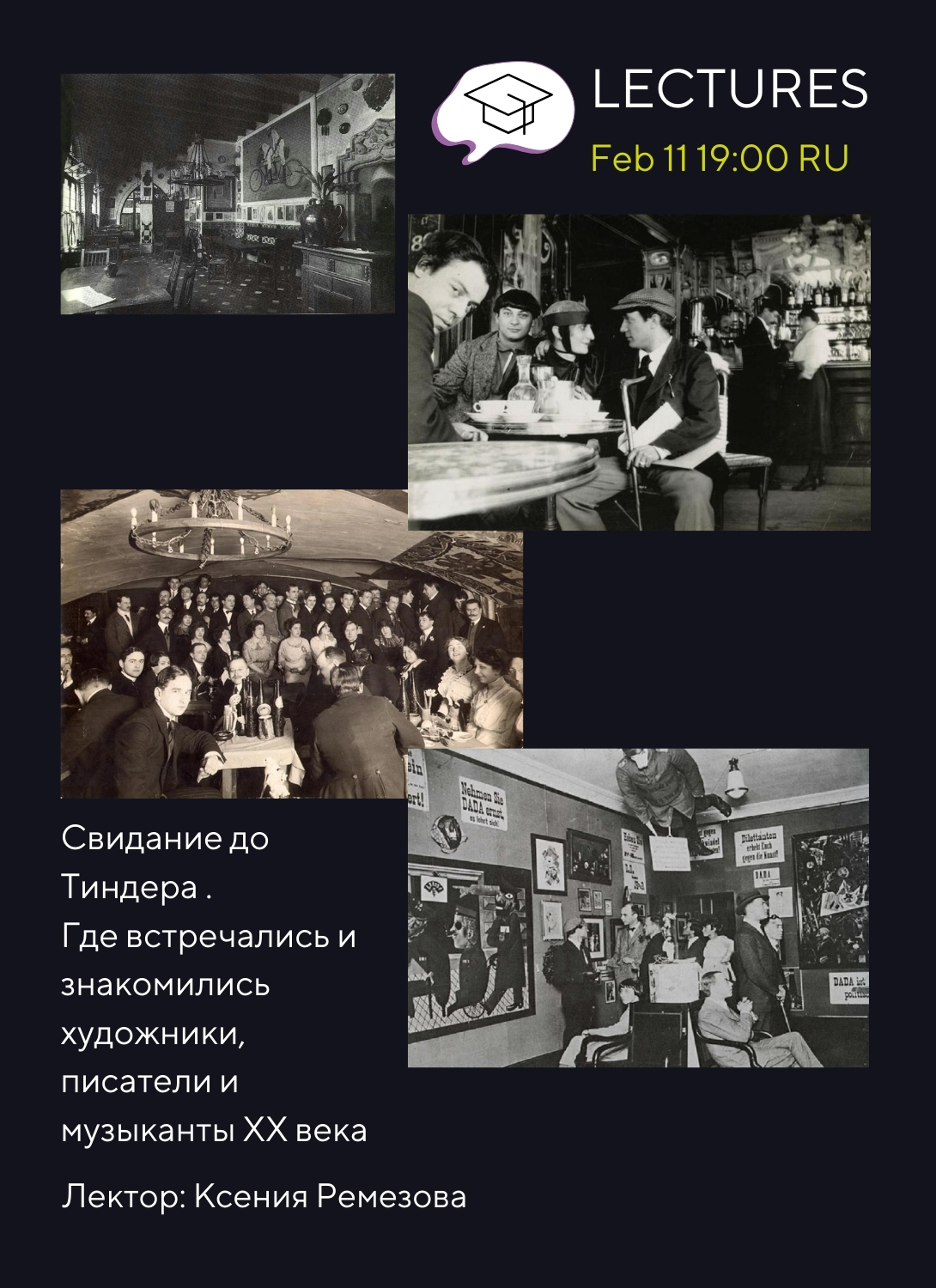11.02.2026 19:00 Лекция Ксении Ремезовой «Свидание до Тиндера. Где встречались и знакомились художники, писатели ХХ веков»