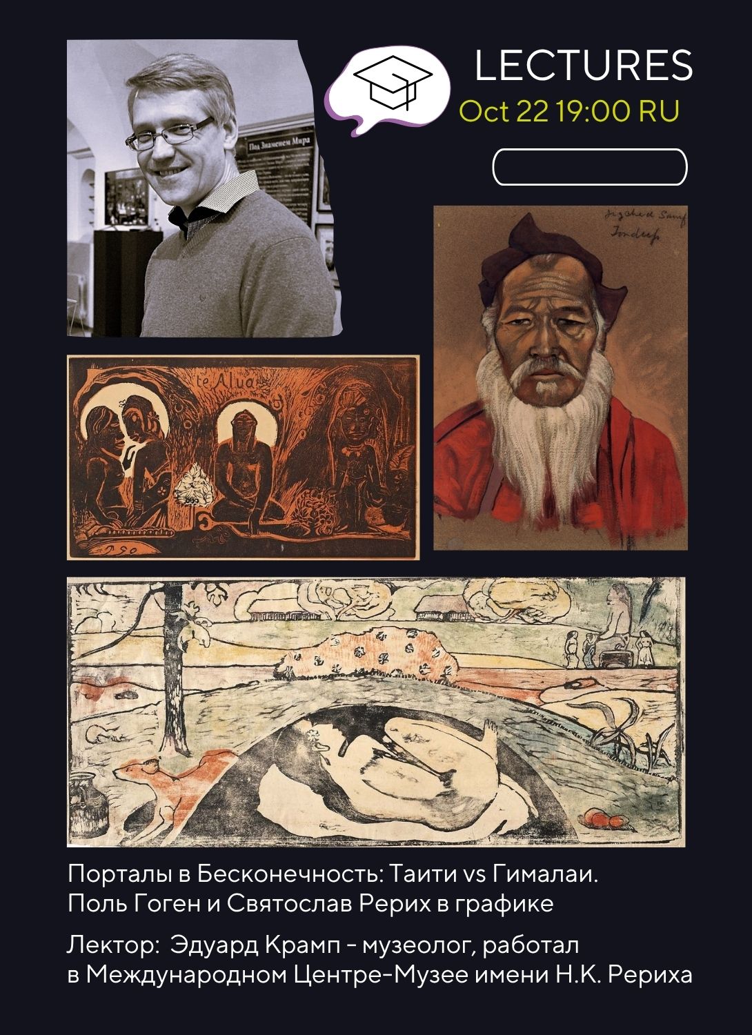 22.10.2025 19:00 Лекция Эдуарда Крампа «Порталы в Бесконечность: Таити vs Гималаи. Гоген и Рерих в графике»